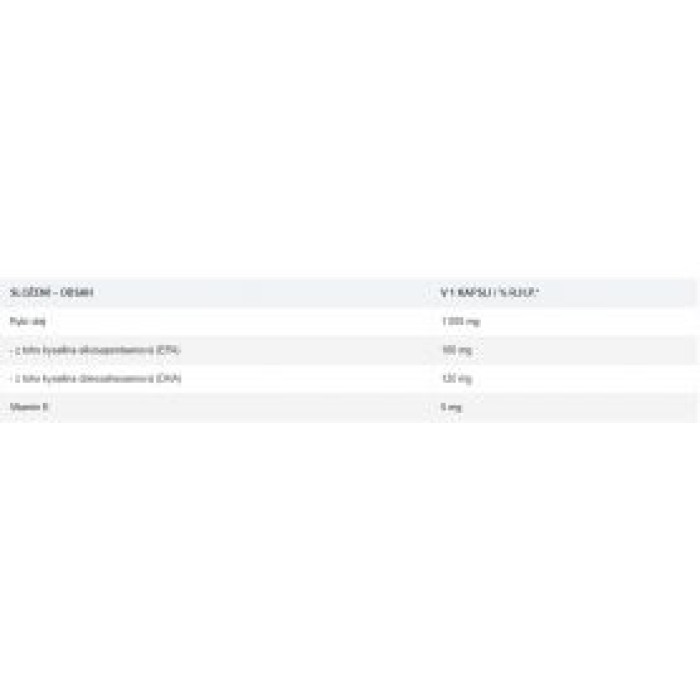 Omega-3 mastné kyseliny (mezi hlavní složky patří kyselina eikosapentaenová [EPA] a kyselina dokosahexaenová [DHA]).